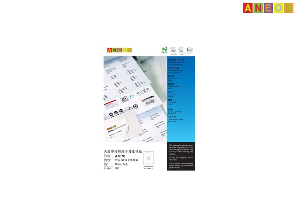 — 2 貼/張 — 100張/盒 — Dia 116mm x 2 CD