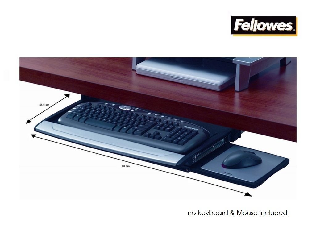 — 產品所選用之膠料,可作100% 循環使用, 合乎環保要求 — 安裝時, 距離檯下有3個高度選擇: 45, 54或63 mm (可因應個人身高安裝,避免鍵盤托碰到大腿) — 附送銀色長形護腕手墊 — 滑鼠平台備有橫向伸縮設計 — 滑鼠平台可左右安裝,方便不同人士選擇 — 顏色: 黑 — 路軌長度: 360 mm — 滑鼠平台尺寸: 250(L) x 220(W) mm — 鍵盤連滑鼠平台尺寸: 800(L) x 350(W) mm — 安裝要求 (最少): a) 檯面深度 400 mm, b) 檯面闊度 800 mm, c) 檯面厚度 19 mm