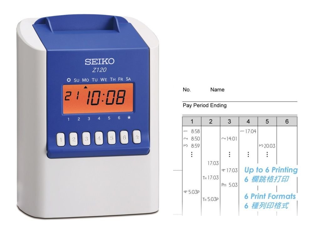 — 特大橙黃色背燈顯示屏 — 可設定 4 種薪金計算周期 : 月計 / 半月計 / 雙周計 / 一周計 — 鎖匙及密碼管理 — 自動調節夏令時間 — 內置電池可於停電時保留記憶體內的數據和設定 — 欄自動或手動跳格打印 — 黑色卡式帶 , 點陣式列印 — 時間制式 : 12 / 24 小時 — 時間準確度 : 每月 + / – 15 秒 — 尺寸 (闊x深x高) : 175 x 132 x 244 毫米 — 重量 : 約 1.6 公斤 — 色帶 TP-1051N — 1 年有限自攜保養